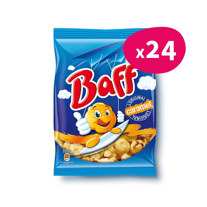 Au bon goût sucré du caramel, le pop corn BAFF est irrésistiblement croquant et croustillant. Sa recette basique et originale est sublimée par une dose de sucre pour un plaisir des plus gourmands. La légèreté et le croquant sucré font de ce pop corn un délice fondant en bouche. La recette du pop corn sucré BAFF le rend particulièrement gourmand et léger à la fois. Ses ingrédients sont justement équilibrés pour vous offrir une expérience gustative des plus qualitative en bouche.